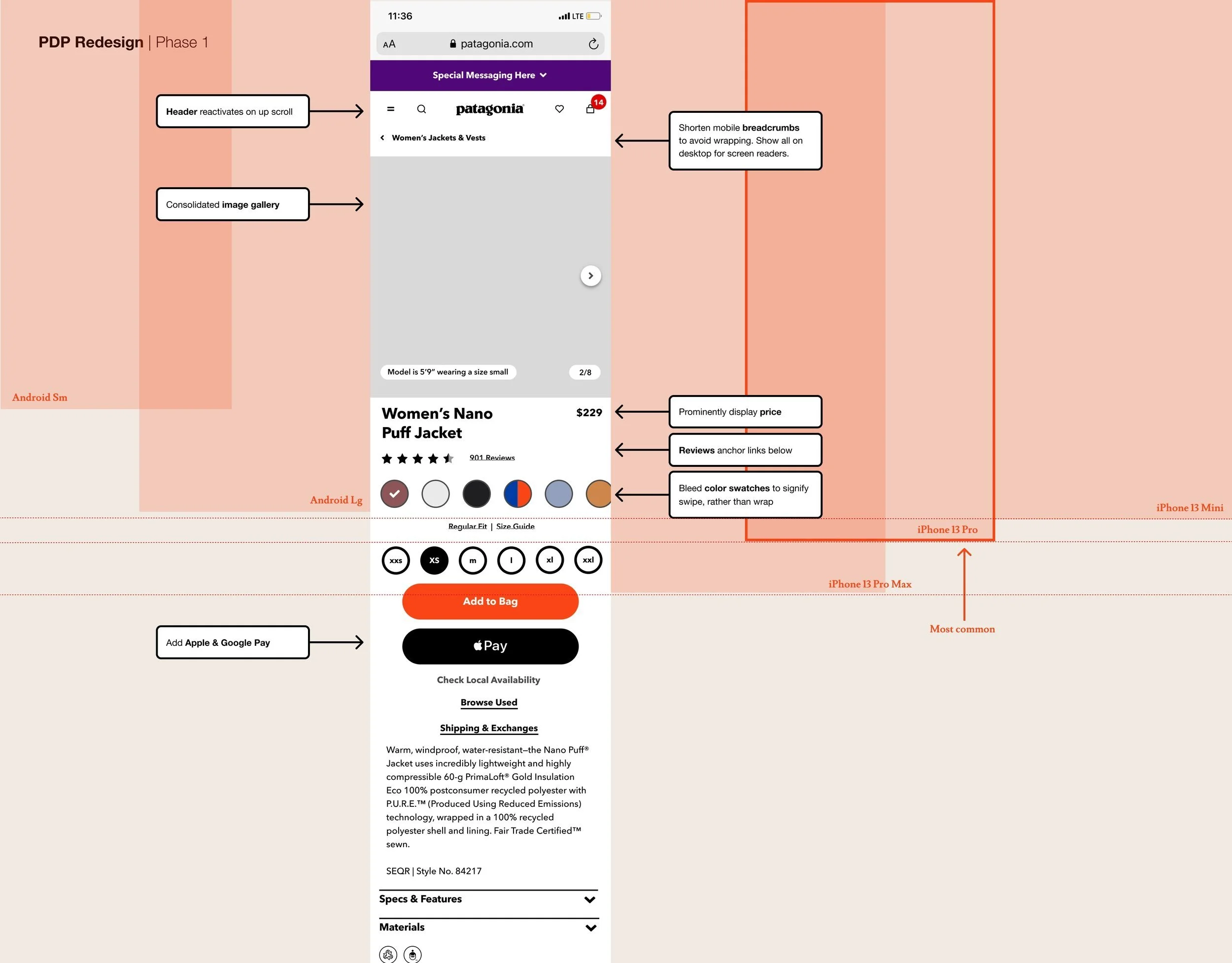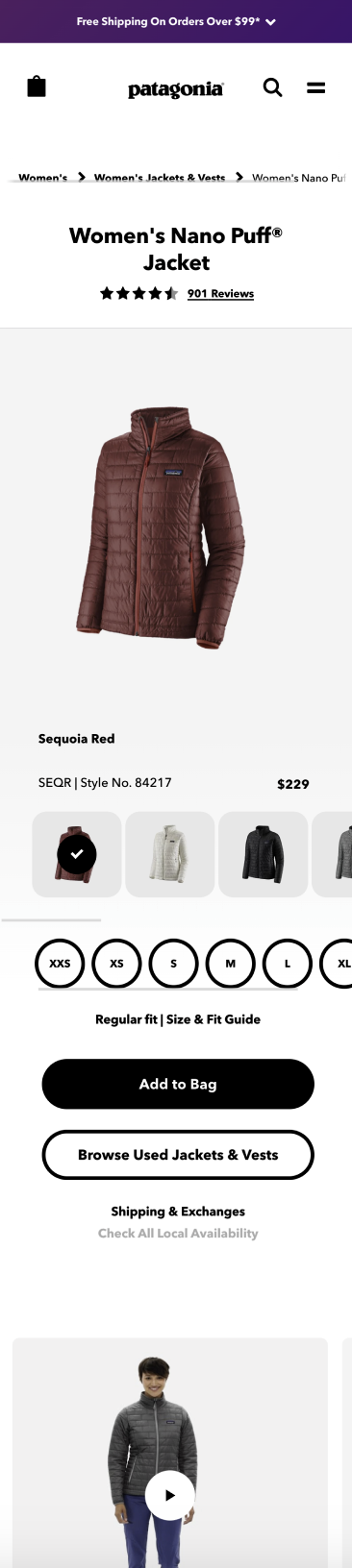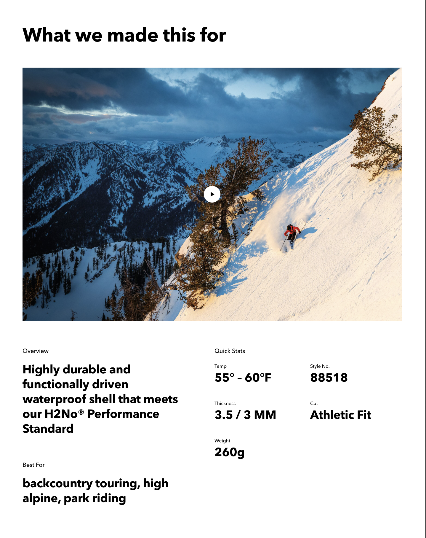 Revamp the product detail pages on Patagonia.com to incorporate visual storytelling that showcases product features, materials, and the inspiring environments where they can be used. Emphasize a technical visual language to align with the performance-driven nature of the garments.